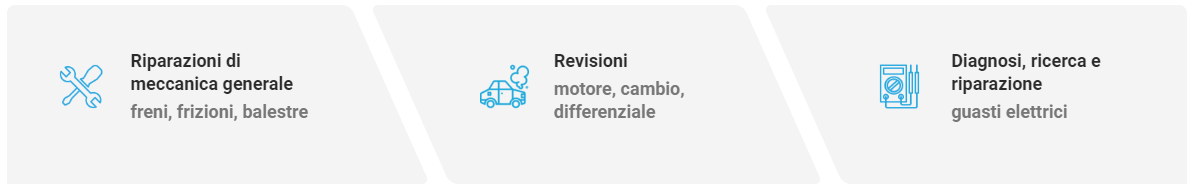 Lavoriamo con un team di tecnici qualificati, apparecchiature all’avanguardia e componentistica di qualità. In officina o con pronti interventi su strada, siamo a disposizione per garantire ai tuoi veicoli l’affidabilità e le funzionalità per viaggiare in completa sicurezza.